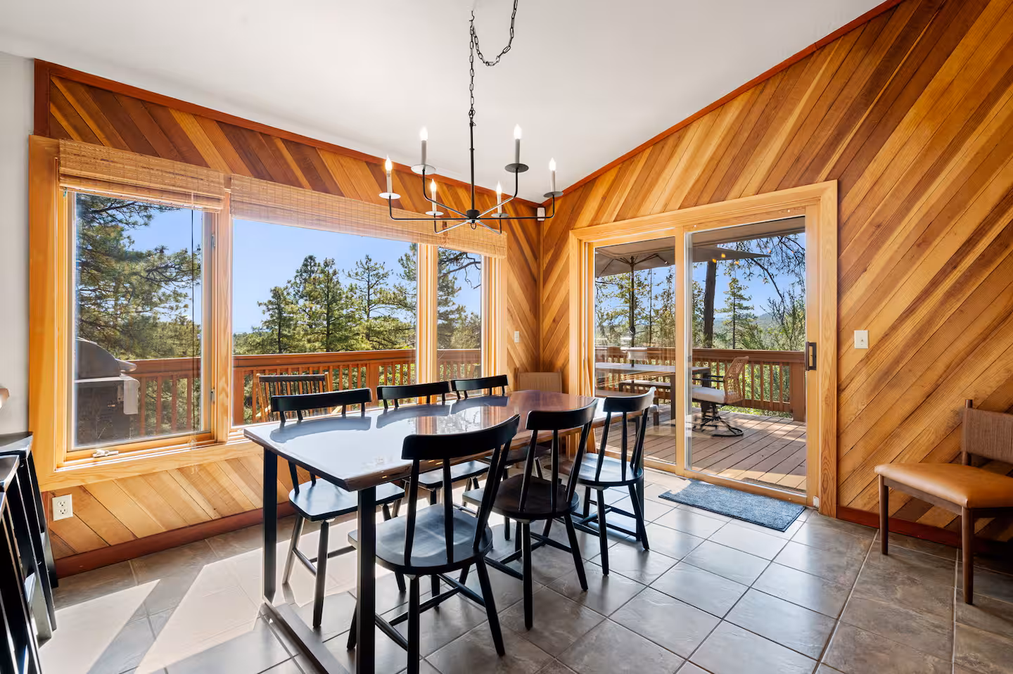• A spacious wraparound deck invites you to enjoy your morning coffee with sweeping views through the tall pines.
